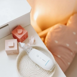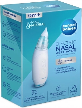 L'aspiratore nasale elettrico Canpol Babies offre una soluzione rapida e sicura per liberare le vie nasali del tuo bambino. Grazie alla modalità silenziosa, puoi usarlo anche durante il sonno del bambino, facilitando l'assistenza sia a casa che in viaggio.