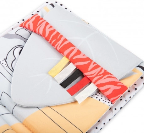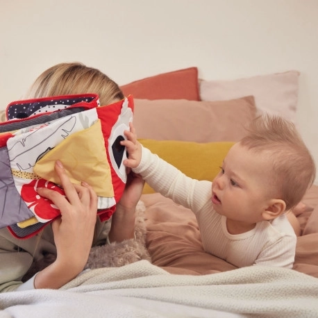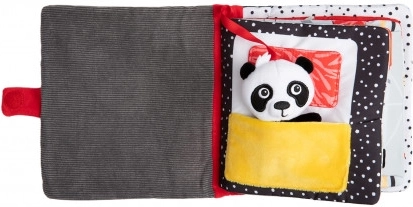 Elementi interattivi, come il panda su un nastro, consentono a genitori e bambini di giocare insieme. Il libro è dotato di una chiusura in velcro per un’apertura facile e la sicurezza del bambino. La lettura e il gioco con questo libretto rafforzano significativamente il legame tra genitore e bambino.