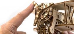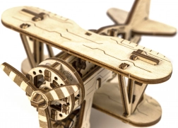 Il kit è realizzato in compensato di betulla di alta qualità e si assembla senza bisogno di colla o attrezzi. Le dimensioni del modello assemblato sono ca. 16,1 x 14 x 8,8 cm. È un regalo perfetto per gli amanti degli aerei e garantisce ore di divertimento e apprendimento dei meccanismi di ingranaggi e ruote dentate.