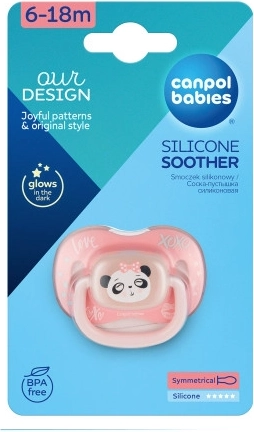 Calma il tuo bambino con il succhietto Canpol babies EXOTIC ANIMALS 6–18 m. La tettarella simmetrica in morbido silicone ipoallergenico, privo di sapore e odore, è facilmente accettata; le aperture di ventilazione nello scudo proteggono la pelle sensibile e il centro che si illumina al buio facilita la ricerca notturna. Il succhietto è robusto, resistente alla deformazione, senza BPA e può essere sterilizzato.