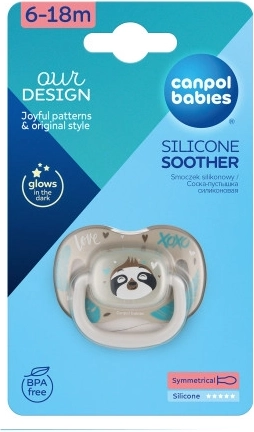 Il ciuccio Canpol babies Exotic Animals rilassa e calma il tuo bambino. La tettarella simmetricamente sagomata è realizzata in silicone di altissima qualità, sicuro e morbido, privo di odore e sapore, facilitando l’accettazione del ciuccio da parte del bambino. Le aperture di ventilazione nello scudo garantiscono una respirazione libera e la deglutizione della saliva. La forma appositamente progettata dello scudo minimizza i segni sul delicato viso del bambino e previene le irritazioni. L’impugnatura pratica consente di fissare il ciuccio e ne facilita la somministrazione al bambino. Il centro del ciuccio si illumina al buio, facilitando il ritrovamento notturno. Il ciuccio simmetrico in silicone Canpol babies 6-18m EXOTIC ANIMALS (bradipo) è robusto e resistente alla deformazione. Senza BPA. È sicuro e facile da mantenere pulito: può essere disinfettato in acqua bollente e nello sterilizzatore. Il ciuccio simmetrico si adatta bene alla bocca del bambino indipendentemente dal modo in cui viene posizionato e la sua forma è considerata la più fisiologica, supportando il mantenimento del ritmo naturale di suzione e il corretto sviluppo del linguaggio. Ciuccio consigliato per bambini da 6 a 18 mesi. Il ciuccio simmetrico in silicone Canpol babies 6-18m EXOTIC ANIMALS (bradipo) è disponibile in diversi design unici e varie misure: cresce con il bambino.