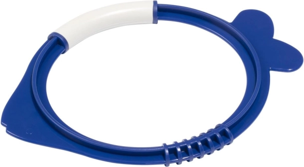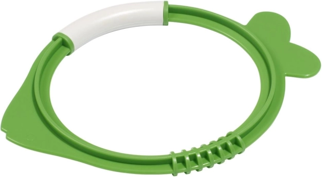 La forma ad anello e la presa testurizzata facilitano l’impugnatura e il recupero dal fondo anche ai bambini più piccoli.
