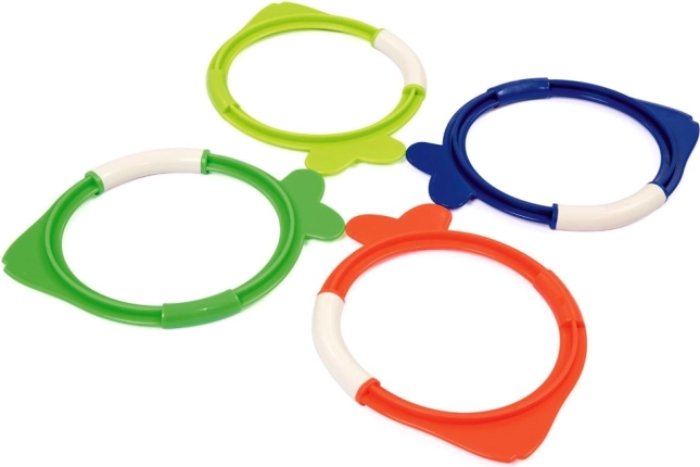 Il set di anelli da immersione a forma di pesce è un accessorio divertente ed educativo per la piscina. Dopo il lancio, i pesci affondano lentamente, così i bambini possono allenare l’orientamento sott’acqua, l’apnea e la sicurezza nelle immersioni. I colori vivaci facilitano la ricerca e aumentano la motivazione al gioco.
