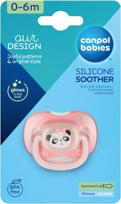 Il ciuccio Canpol babies Exotic Animals rilassa e calma il tuo bambino. La tettarella a forma simmetrica è realizzata in silicone di altissima qualità, sicuro e morbido, inodore e insapore, il che facilita l’accettazione del ciuccio da parte del bambino. Le aperture di ventilazione nello scudo assicurano una respirazione libera e la deglutizione della saliva. La forma dello scudo, appositamente studiata, minimizza i segni sul delicato viso del bambino e previene le irritazioni. La pratica impugnatura consente di fissare il ciuccio e ne facilita la somministrazione al bambino. Il centro del ciuccio si illumina al buio, rendendo più facile trovarlo di notte. Il ciuccio simmetrico in silicone Canpol babies 0-6m EXOTIC ANIMALS (panda) è solido e resistente alla deformazione. Senza BPA. È sicuro e facile da mantenere pulito: può essere disinfettato in acqua bollente e nello sterilizzatore. Il ciuccio simmetrico si adatta bene alla bocca del bambino indipendentemente dal modo in cui viene posizionato, e la sua forma è considerata la più fisiologica, supportando il mantenimento del ritmo naturale di suzione e il corretto sviluppo del linguaggio. Ciuccio consigliato per bambini da 0 a 6 mesi. Il ciuccio simmetrico in silicone Canpol babies 0-6m EXOTIC ANIMALS (panda) è disponibile in diversi design unici e in varie misure: cresce con il bambino.