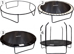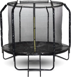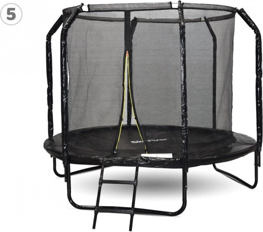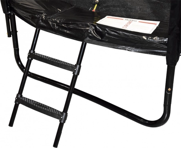 La superficie di salto in polipropilene JUMPING MAT è cucita con 8 cuciture rinforzate, aumentando la resistenza agli sforzi. I pali metallici profilati sono rivestiti con morbida schiuma protettiva e l’ingresso del trampolino ha una doppia chiusura (zip + fibbia). Per una salita agevole è presente una scaletta a due gradini.