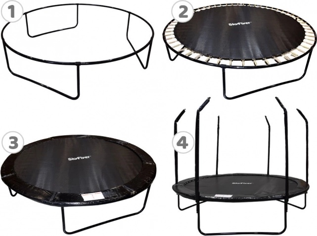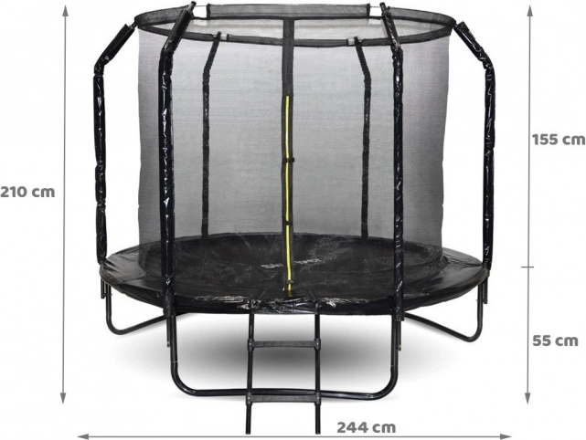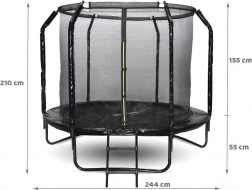 Il trampolino SKYFLYER con diametro di 244 cm è una scelta ideale per le famiglie che desiderano promuovere l’attività fisica di bambini e adulti. La struttura robusta con gambe a U, le molle forti e la fitta rete di protezione con stabile rinforzo ad anello assicurano massima sicurezza e stabilità durante il salto.