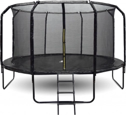 Il robusto trampolino SkyFlyer con diametro di 426 cm (14 ft) offre ampio spazio per saltare, allenarsi e divertirsi nel tempo libero. La sicurezza è assicurata da una rete di protezione alta tesa tramite un anello superiore e da montanti profilati morbidi e imbottiti. L’ingresso è dotato di cerniera e fibbia per la massima sicurezza dei bambini.