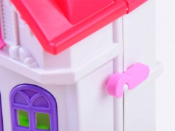 La casa pieghevole conquista con colori vivaci e finiture dettagliate: la facciata è decorata con rilievi di fiorellini e uccellini. Una volta aperta, offre uno spazio di gioco ordinato dove i bambini possono sistemare facilmente i mobili. Le figure di mamma, papà e figlia hanno braccia mobili e testa girevole, per tante attività di gioco di ruolo. Il pratico campanello con effetto luminoso annuncia l’arrivo degli ospiti e dona al gioco il fascino di una vera casa.