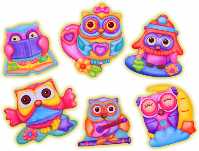 Crea fino a 6 magneti diversi e decora il frigorifero o l’angolo dei bambini con simpatici gufetti in colori vivaci.