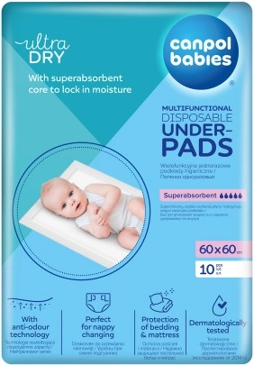 I teli igienici multifunzionali Canpol babies con strato protettivo impermeabile sul lato inferiore sono perfetti per molte situazioni. Il telo super assorbente assorbe rapidamente i liquidi e trattiene l’umidità all’interno. I teli igienici sono indispensabili per le donne nel periodo post-partum. Sono utili durante il cambio del bebè, in viaggio, in visita in clinica o come protezione del materasso (pannolino che perde, rigurgito ecc.) e durante l’educazione al vasino. I teli con strato superiore morbido sono delicati sulla pelle e la tecnologia che neutralizza i cattivi odori mantiene una sensazione di freschezza. Testati dermatologicamente. I teli igienici multifunzionali Canpol babies sono utili anche per persone con incontinenza urinaria e per le cure palliative. La confezione contiene 10 pezzi di dimensioni: 60x60 cm. Consigliato da un’ostetrica. *La confezione contiene 10 pezzi. Dimensioni dei teli/cambi: larghezza 60 cm, lunghezza 60 cm, spessore 8 mm. Adatti durante il cambio del bebè oppure per persone con incontinenza o in cure palliative. Il telo super assorbente assorbe rapidamente i liquidi e trattiene l’umidità all’interno. 60 x 60 cm – dimensione pratica. Con tecnologia di neutralizzazione degli odori. Strato superiore morbido e delicato sulla pelle. Testati dermatologicamente. Indispensabili per le donne nel periodo post-partum. Utili per la cura e il cambio dei bambini. Protezione della biancheria da letto e del materasso dallo sporco. Utili in viaggio e durante le passeggiate. Istruzioni per l’uso: Teli monouso. Per motivi igienici, sostituirli regolarmente. Smaltire dopo l’uso. Avvertenza! Il prodotto non è un giocattolo. Tenere fuori dalla portata dei bambini. I teli soddisfano i requisiti della Direttiva 2001/95/CE del Parlamento Europeo e del Consiglio sulla sicurezza generale dei prodotti.