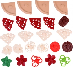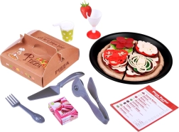 Il set include basi d’impasto, salsa, fette di formaggio e tanti topping colorati come pepperoni, funghi, peperone, pomodoro e lattuga. Non mancano la rotella tagliapizza, la paletta per pizza, le posate, il piatto, i bicchieri per bevande, il menu e la scatola per pizza.