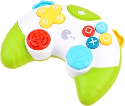 Sui lati del controller si trovano elementi scorrevoli che producono piacevoli suoni tintinnanti, stimolando tatto e udito. Il giocattolo è progettato per le mani dei più piccoli: è leggero, facile da impugnare e i pulsanti sono facilmente raggiungibili. Il layout realistico dei comandi aiuta i bambini a sviluppare la coordinazione occhio–mano e insegna le basi del controllo.