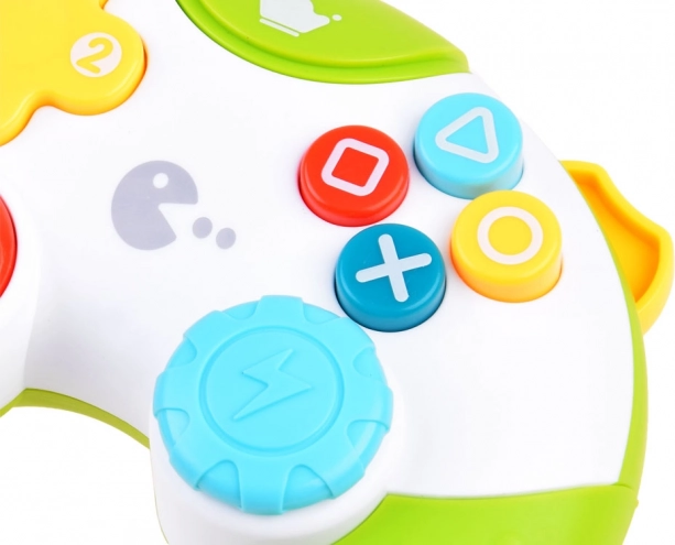 Un colorato controller per bambini in stile console di gioco offre luci, melodie ed effetti sonori che sviluppano la motricità fine, l'udito e l'immaginazione. Grazie alla forma ergonomica per le manine e al posizionamento realistico dei pulsanti, i bambini possono divertirsi con un gioco di imitazione sicuro senza prendere in prestito un vero controller.