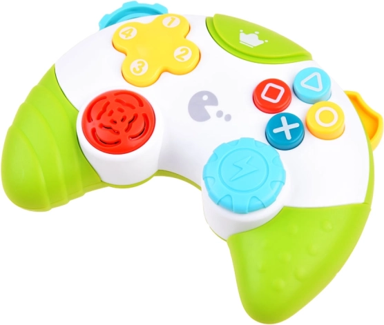 Questo controller interattivo musicale assomiglia a un vero gamepad e attira i bambini con colori vivaci, effetti luminosi e melodie allegre. Il pulsante più grande permette ai piccoli di “comporre” proprie sequenze sonore, favorendo in modo naturale la creatività e il senso musicale.