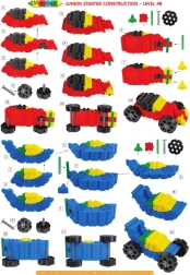 Include ruote e elementi di collegamento per creare veicoli funzionanti e altre costruzioni mobili che sviluppano immaginazione e motricità.