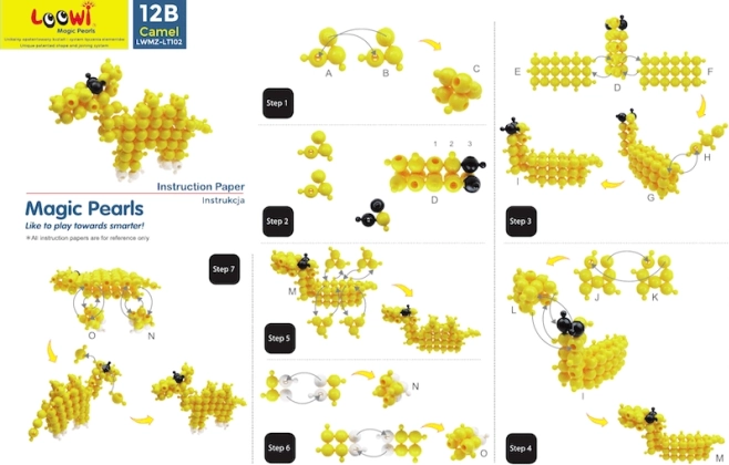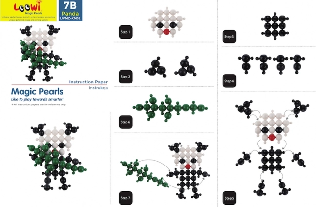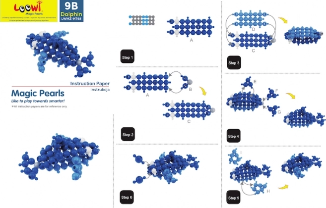 Le costruzioni LOOWI offrono intelligenti pezzi sferici che si uniscono facilmente e mantengono la forma. I bambini possono costruire leone, giraffa, pappagallo, delfino e molte altre creature seguendo le istruzioni incluse, oppure dare sfogo alla fantasia creando modelli originali. Durante la costruzione allenano naturalmente coordinazione mano–occhio, pazienza e visione spaziale.