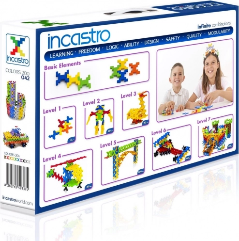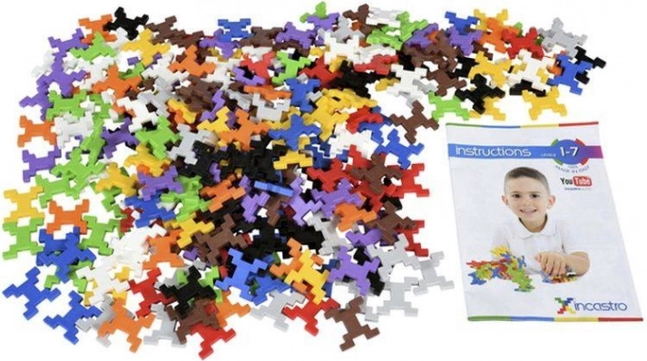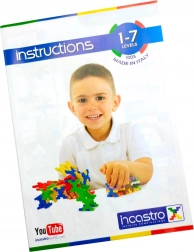 INCASTRO è un set di costruzioni intelligente, prodotto in Italia, che grazie alla forma accurata dei pezzi offre possibilità quasi illimitate. Con pochi elementi puoi comporre facilmente modelli piatti, torri, veicoli, animali e modelli funzionali. I pezzi si incastrano con precisione e le costruzioni rimangono salde e compatte.