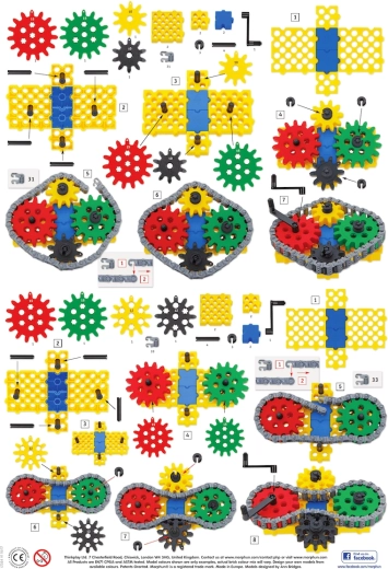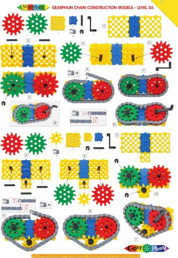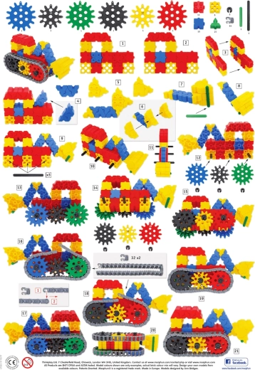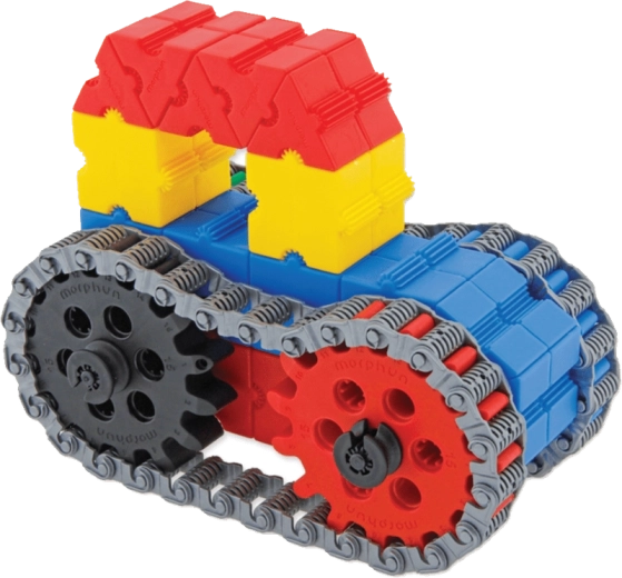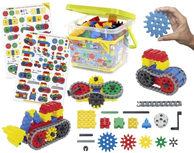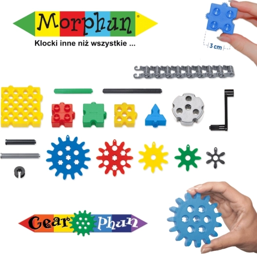 Il set di costruzione MORPHUN GearPhun offre blocchi colorati, ingranaggi in 5 dimensioni, catene, connettori e altri elementi per realizzare meccanismi funzionanti. Il kit include 4 schede di istruzioni che consentono ai bambini di costruire passo dopo passo macchine, veicoli e altre strutture mobili – dall’escavatore cingolato al rullo compressore.