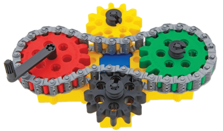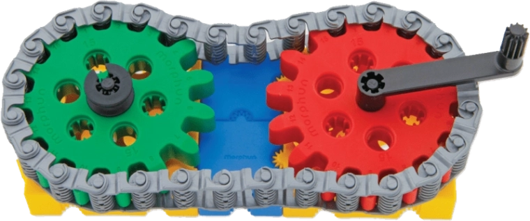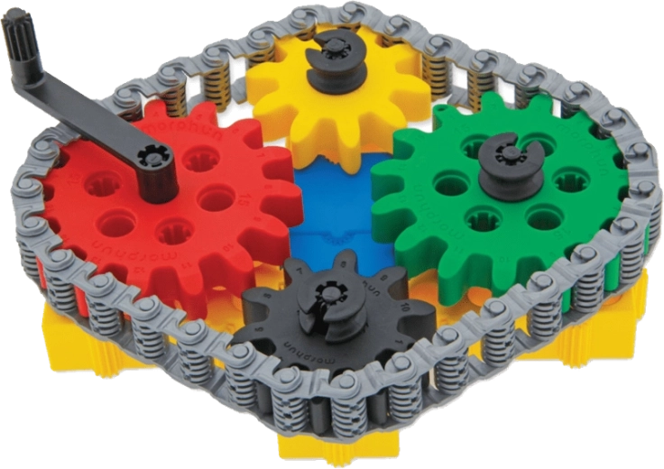 I bambini comprendono facilmente la meccanica del movimento: collegano ingranaggi, catena e manovella e vedono l’intero meccanismo mettersi in moto.