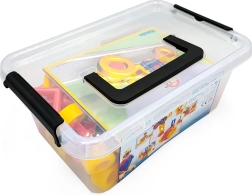 La scatola trasparente con chiusure di sicurezza mantiene tutti i pezzi insieme, facilita il trasporto e offre una rapida panoramica del contenuto.