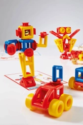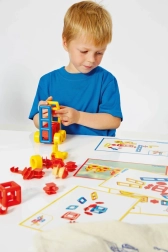 Il set include carte illustrative e attive che mostrano ai bambini, passo dopo passo, come assemblare i primi modelli e li ispirano a creare in autonomia.