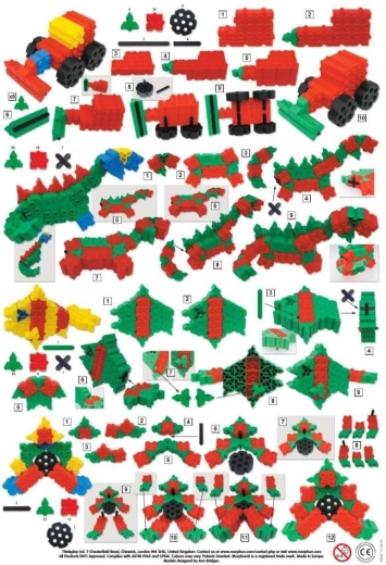 Ogni piccolo costruttore ama il gioco creativo con i mattoncini. Costruire castelli, auto o astronavi è tempo ben speso. Le più diverse ruspe, auto da corsa o animaletti costruiti con i mattoncini Morphun garantiscono un divertimento prolungato. I mattoncini si collegano facilmente e le connessioni sono resistenti. Le ruote mobili offrono ulteriori possibilità per creare gare o costruire veicoli mobili multiruota. Il set di mattoncini Creative Constructions è unico anche grazie all’istruzione supplementare inclusa sotto forma di opuscolo. 32 istruzioni a colori passo dopo passo stimolano la fantasia dei bambini e mostrano quante possibilità offrono i mattoncini in plastica Morphun. Si tratta sicuramente di uno dei migliori set di costruzioni universali. Soddisferà le aspettative anche dei piccoli costruttori più esigenti. Una scatola sicura e funzionale con maniglia facilita la conservazione.