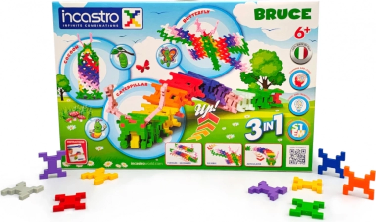 Scopri il set di costruzioni creativo INCASTRO con il tema del ciclo della farfalla: con 103 pezzi costruirai bruco, bozzolo e farfalla. L’esclusiva forma dei pezzi permette connessioni in molte direzioni per modelli 2D e 3D, sviluppando motricità fine, immaginazione spaziale e pensiero logico. La qualità dei materiali, i colori vivaci e la scatola con manico rendono questo set un eccellente regalo educativo per bambini dai 5 anni in su.