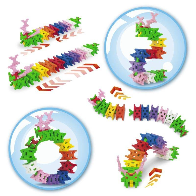La forma speciale consente di collegare gli elementi con angoli e piani differenti. Da pochi pezzi nascono decine di combinazioni e strutture stabili.