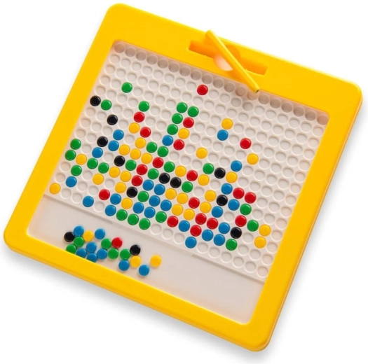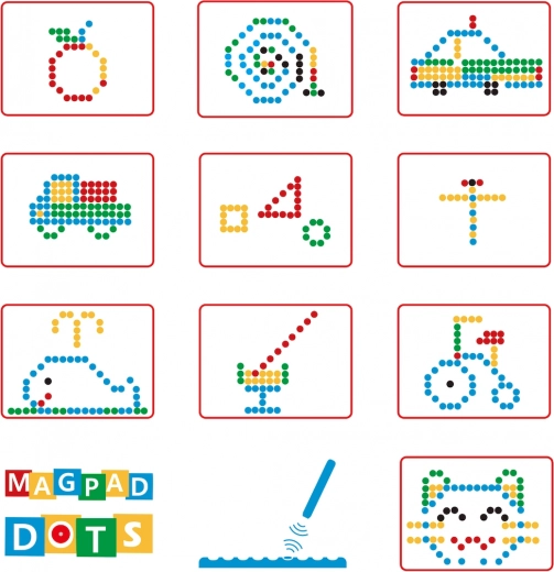MagPad Dots favorisce lo sviluppo della motricità fine, la coordinazione occhio–mano e una corretta impugnatura. I bambini allenano pazienza e concentrazione creando motivi propri o seguendo le schede. Le sfere magnetiche restano saldamente sotto la copertura, così nulla cade o si perde.