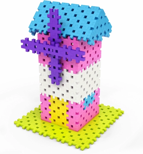 Il grande set nei delicati colori “pink” lascia ampio spazio alla fantasia: costruisci casette, personaggi, fiori e veicoli e sviluppa la creatività di tutta la famiglia.