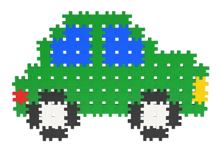 I pezzi si collegano facilmente in figure piatte e forme tridimensionali – dal pinguino e dalla pecorella fino ai dinosauri e alle casette.