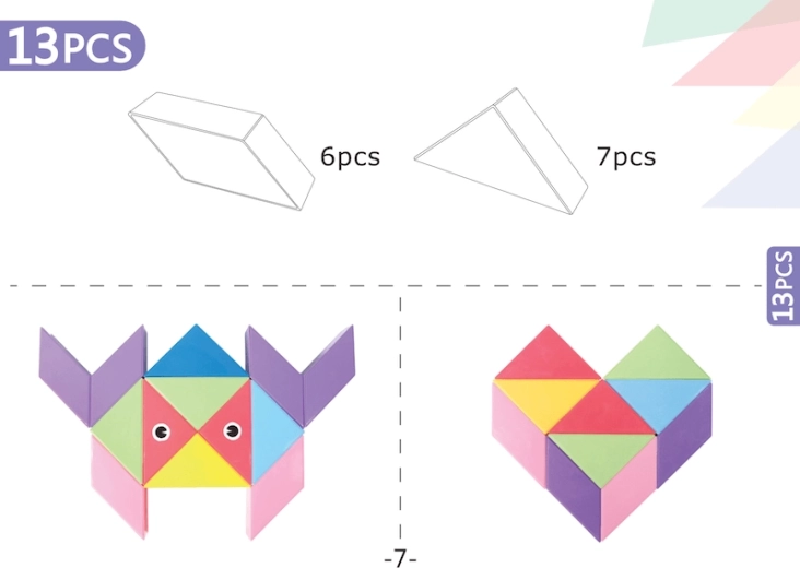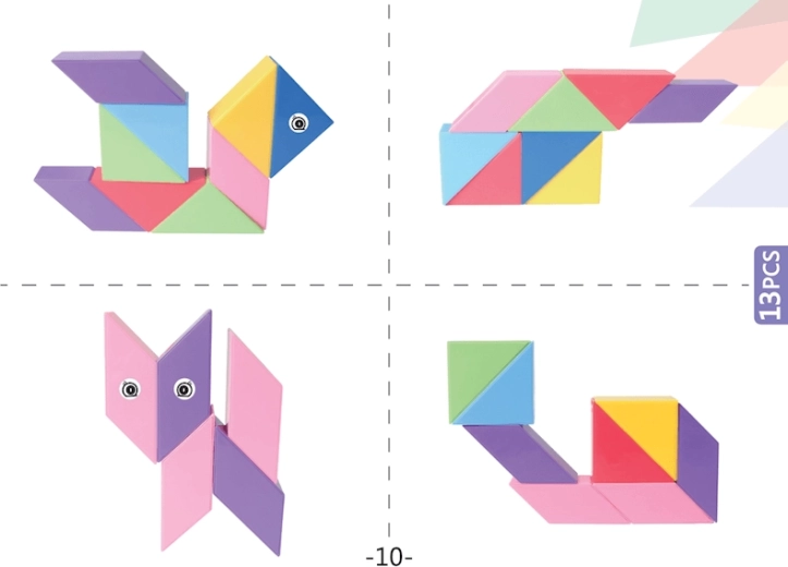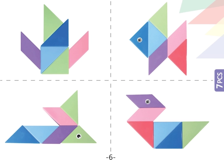 Scoprite un gioco divertente ed educativo con il tangram magnetico da 60 pezzi. Grazie ai magneti, le costruzioni sono stabili e facili da assemblare, favorendo creatività, apprendimento di forme e colori e pensiero logico. Il materiale leggero e resistente e i colori vivaci garantiscono un divertimento duraturo a partire dai 3 anni.
