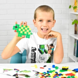 L’ampia quantità di pezzi colorati invoglia al gioco creativo: dalle mosaici 2D ai semplici modelli 3D che sviluppano fantasia e motricità fine.