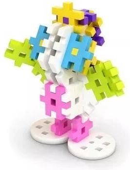 La confezione contiene 60 pezzi base a forma di waffle, 2 assi, 4 ruote e 4 esagoni, che offrono una texture piacevole per la stimolazione tattile. Manipolando i pezzi, i bambini allenano la presa corretta e la coordinazione mano-occhio, migliorando la loro motricità fine, essenziale per imparare a scrivere o usare le forbici. L'aggiunta di una base per stabilizzazione amplia le opzioni di gioco costruttivo.