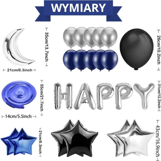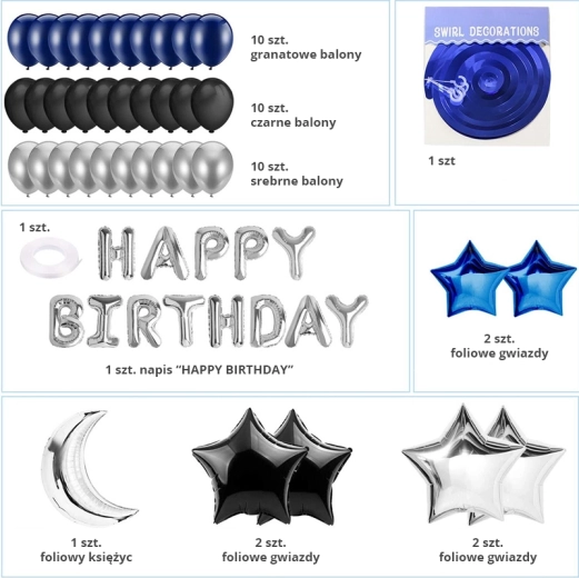 Set di palloncini per compleanno - blu scuro e nero