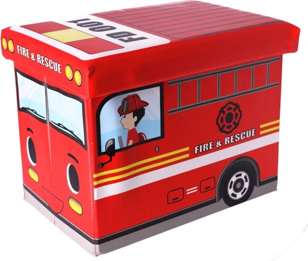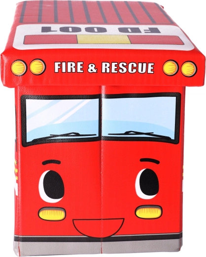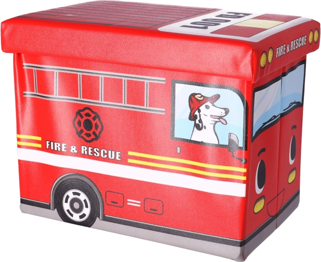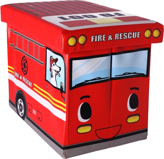 Scatola porta giocattoli con pouf — Camion dei pompieri