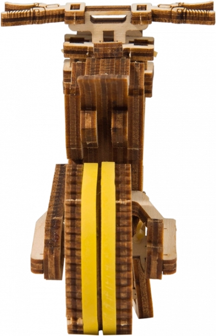 Il modello si assembla senza colla grazie ai pezzi tagliati con precisione in compensato di betulla di alta qualità. Una volta montato, sorprende con il pacco inerziale con autonomia fino a 1 m, la ruota anteriore sterzabile e le ruote gommate per una migliore trazione. Il montaggio è non solo divertente ma anche educativo: ti avvicina a ingranaggi, trasmissioni e altre componenti meccaniche.
