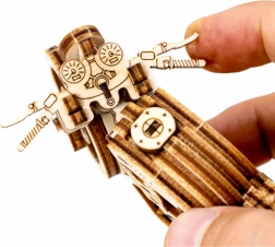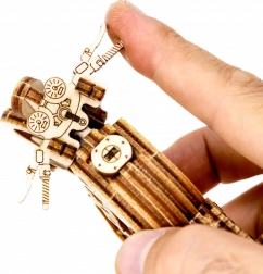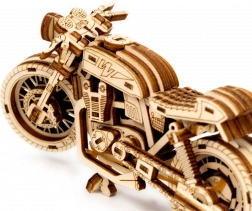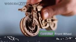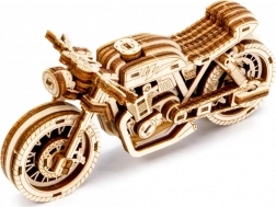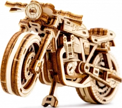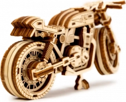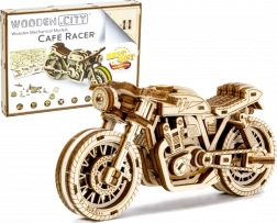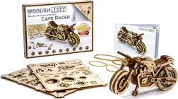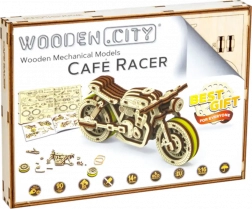 La moto Café Racer di WOODEN CITY è un modello in legno finemente dettagliato in scala 1:16, che darà vita alla tua scrivania o vetrina. Grazie al motore a elastico e al meccanismo di trazione retrocaricata, il modello si muove avanti e indietro, copre circa 1 metro e offre uno sguardo sulla vera meccanica degli ingranaggi.