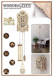 Il puzzle 3D in legno WOODEN CITY Orologio Reale è un capolavoro con dettagli avanzati e linee eleganti. Un regalo ideale per gli amanti della bellezza e delle sorprese. Il modello è ispirato allo stile rococò e include intricati motivi intrecciati intagliati. L’Orologio Reale è progettato per funzionare come un vero misuratore del tempo con periodo del pendolo regolabile, che dipende dal numero di monete inserite.