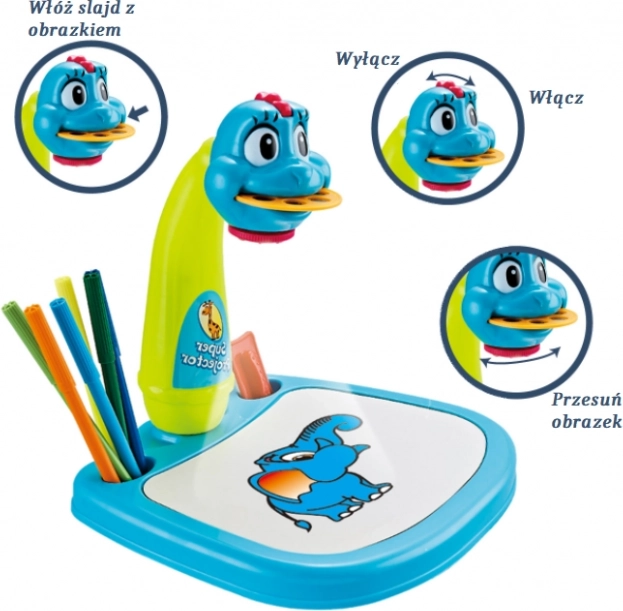Il simpatico proiettore didattico per disegnare a forma di dinosauro blu è la scelta ideale per tutti i bambini che amano disegnare. Questo proiettore multifunzionale offre numerosi modelli interessanti per il disegno. Il prodotto facilita l’apprendimento del disegno, il ricalco delle linee e la creazione di nuove forme; inoltre, giocando, il bambino impara a riconoscere i colori.