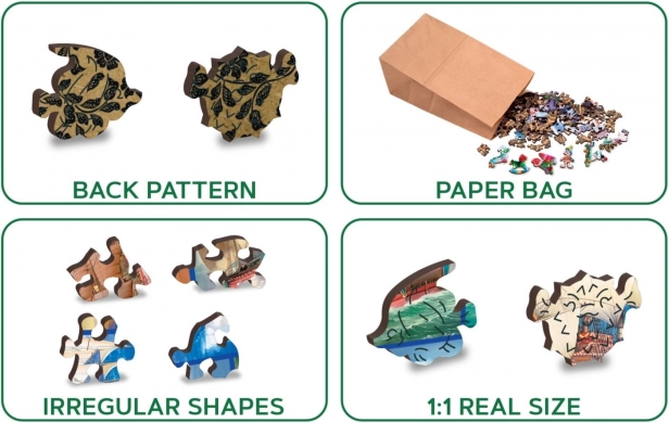 Per la sostenibilità ecologica il puzzle è confezionato in un sacchetto di carta all'interno di una scatola di carta, rendendolo un regalo ideale per ogni occasione.