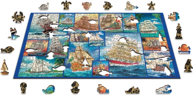 Fantastico giocattolo puzzle in legno del marchio WOODEN CITY offre divertimento con un livello di difficoltà più alto grazie ai pezzi sagomati specialmente. Ogni pezzo è attentamente laserato per garantire una perfetta finitura superficiale senza schegge. Un puzzle molto originale che include 505 pezzi dalle forme uniche che vi condurranno nel mondo dei velieri e delle avventure marine!