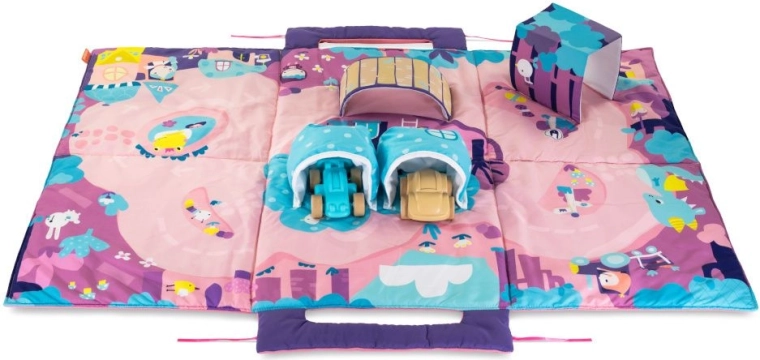 Facile da trasportare - una volta ripiegato, le macchinine possono essere riposte nelle tasche (garage) e, grazie alle maniglie, l’intero tappetino si trasporta facilmente e comodamente.