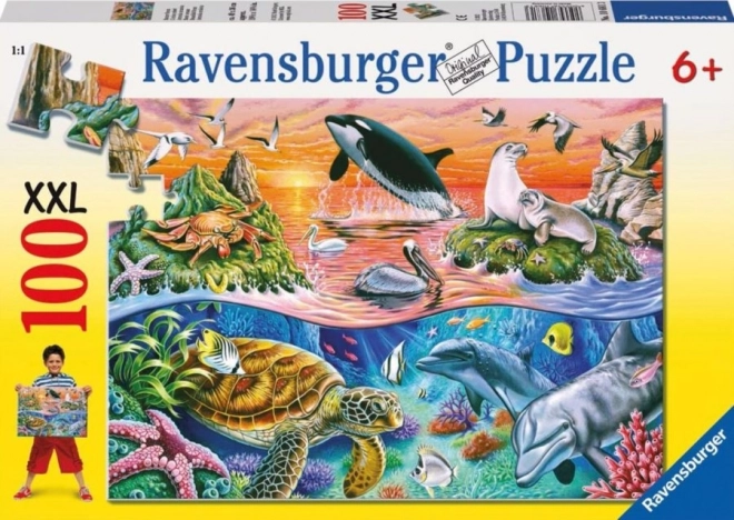 Scopri la bellezza del mondo sottomarino con il puzzle Oceano Splendido XXL del marchio rinomato Ravensburger. Questo puzzle con 100 pezzi offre un effetto visivo straordinario e diventa l'attività perfetta per un pomeriggio piovoso o un momento di relax creativo.