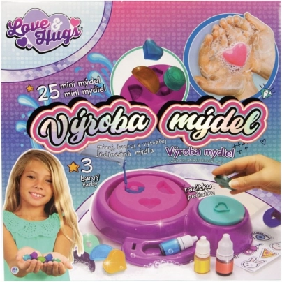Con questo divertente kit per la produzione di saponi trasformerai ogni pomeriggio in un laboratorio creativo. Basta sciogliere i cubetti di sapone, aggiungere qualche goccia dei 3 colori inclusi, mescolare e versare negli stampini sagomati. Procedura semplice, risultato veloce e tanta soddisfazione dalla creazione fatta a mano.