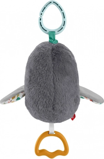 Morbidi anelli da dentizione alleviano le gengive e il delicato tintinnio con il fruscio delle ali sviluppa l’udito e l’attenzione del bebè.