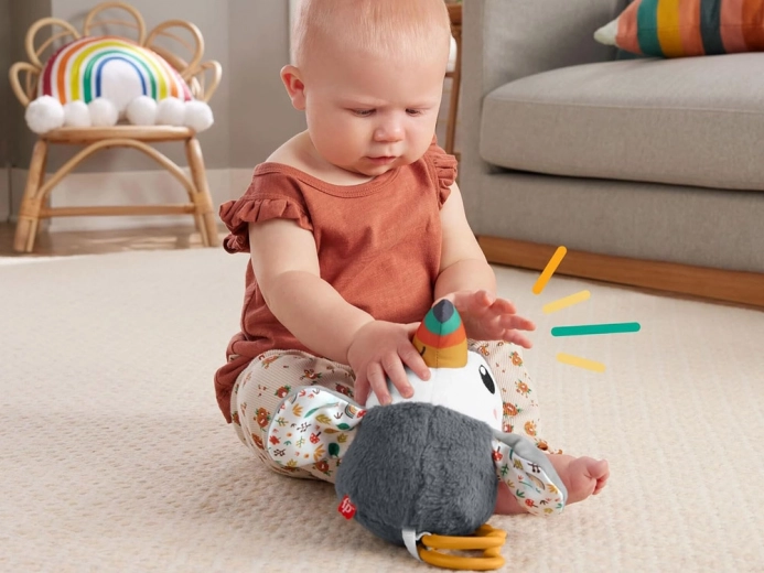 Il dolce tucano di Fisher‑Price è un morbido giocattolo da appendere a passeggino, seggiolino auto o culla. Offre un delicato tintinnio, alette fruscianti, un becchetto colorato e anelli da dentizione per alleviare il fastidio della dentizione. Grazie al clip universale è sempre a portata di mano e sostiene lo sviluppo sensoriale e la motricità fine del bebè fin dalla nascita.