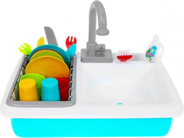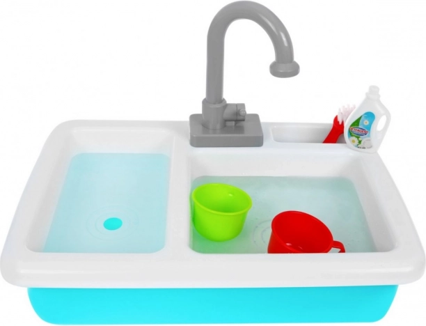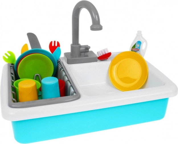 Presentiamo il Lavello per bambini con rubinetto e asciugatrice - il modo perfetto per insegnare ai bambini l'abitudine di riordinare dopo i pasti e divertirsi nello stesso tempo. Il giocattolo è destinato ai bambini dai 3 anni in su e include il certificato CE.