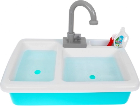 Il lavello con rubinetto simula un vero lavello da cucina e incoraggia il gioco imitativo.