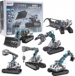 Questo set educativo introduce in modo ludico i principi dell'idraulica e della meccanica. Con 223 componenti puoi costruire 6 modelli funzionali: escavatore, pala caricatrice, camion dei pompieri con piattaforma, gru, pinza e bulldozer. Tutti i modelli condividono una sovrastruttura girevole a 360° e un carro cingolato con cingoli in gomma per un movimento fluido.